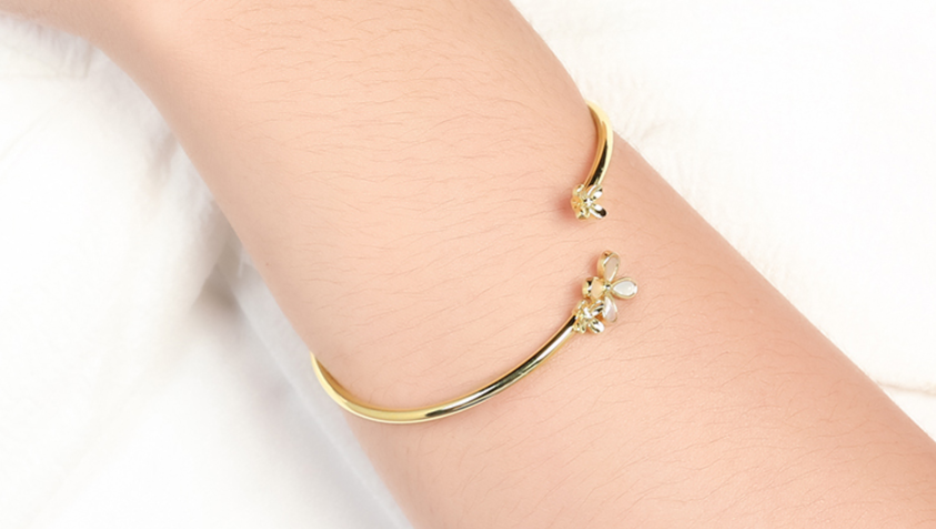 Một chiếc vòng tay dạng kiềng cứng cáp nhưng mảnh mai là món đồ không thể thiếu khi nàng diện áo blazer. Điểm đặc biệt của xu hướng 2026 là những chi tiết chạm khắc tinh vi hoặc đính một viên đá chủ duy nhất ở giữa.