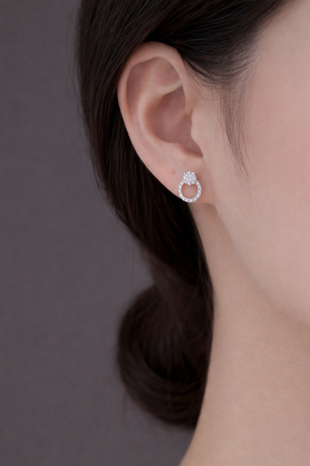 Bông tai bạc Halo tròn mang vẻ đẹp tinh tế, là điểm nhấn thanh lịch tôn vinh nét sang trọng cho phái nữ.