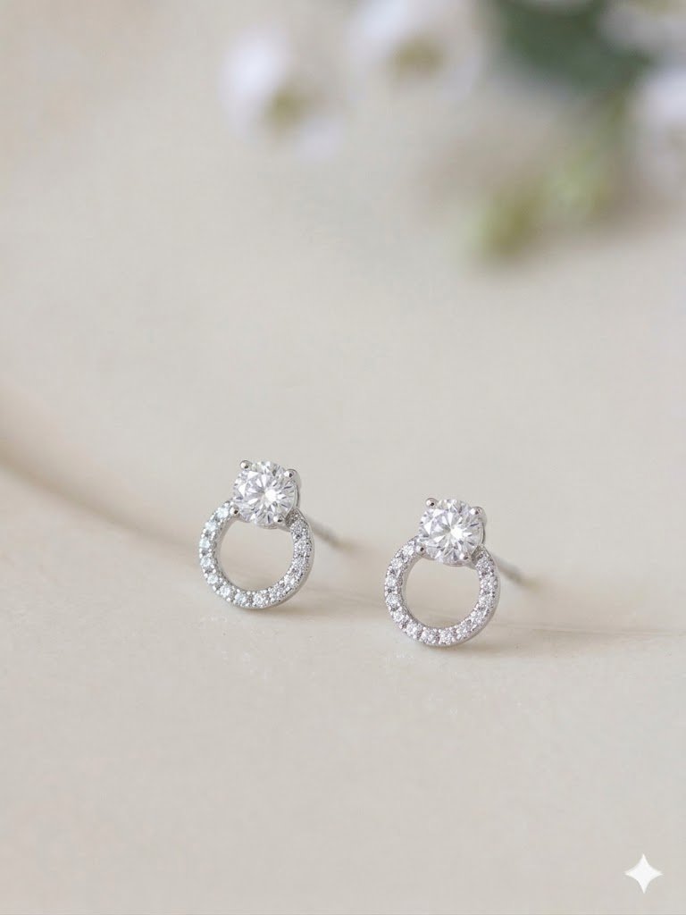 DORI | Bông Tai Bạc Đính Đá Halo Tròn Thanh Lịch