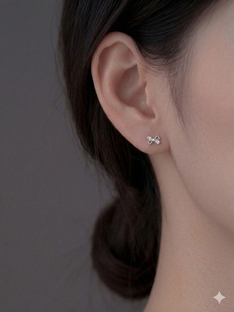 Bông tai nơ đính đá trái tim mang vẻ đẹp ngọt ngào, là món phụ kiện thanh lịch tạo điểm nhấn cuốn hút cho phái đẹp.